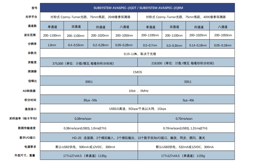 | 機(jī)箱 | 桌面型 SUBSYSTEM AVASPEC-(X)DT | 機(jī)架型SUBSYSTEM AVASPEC-(X)RM |