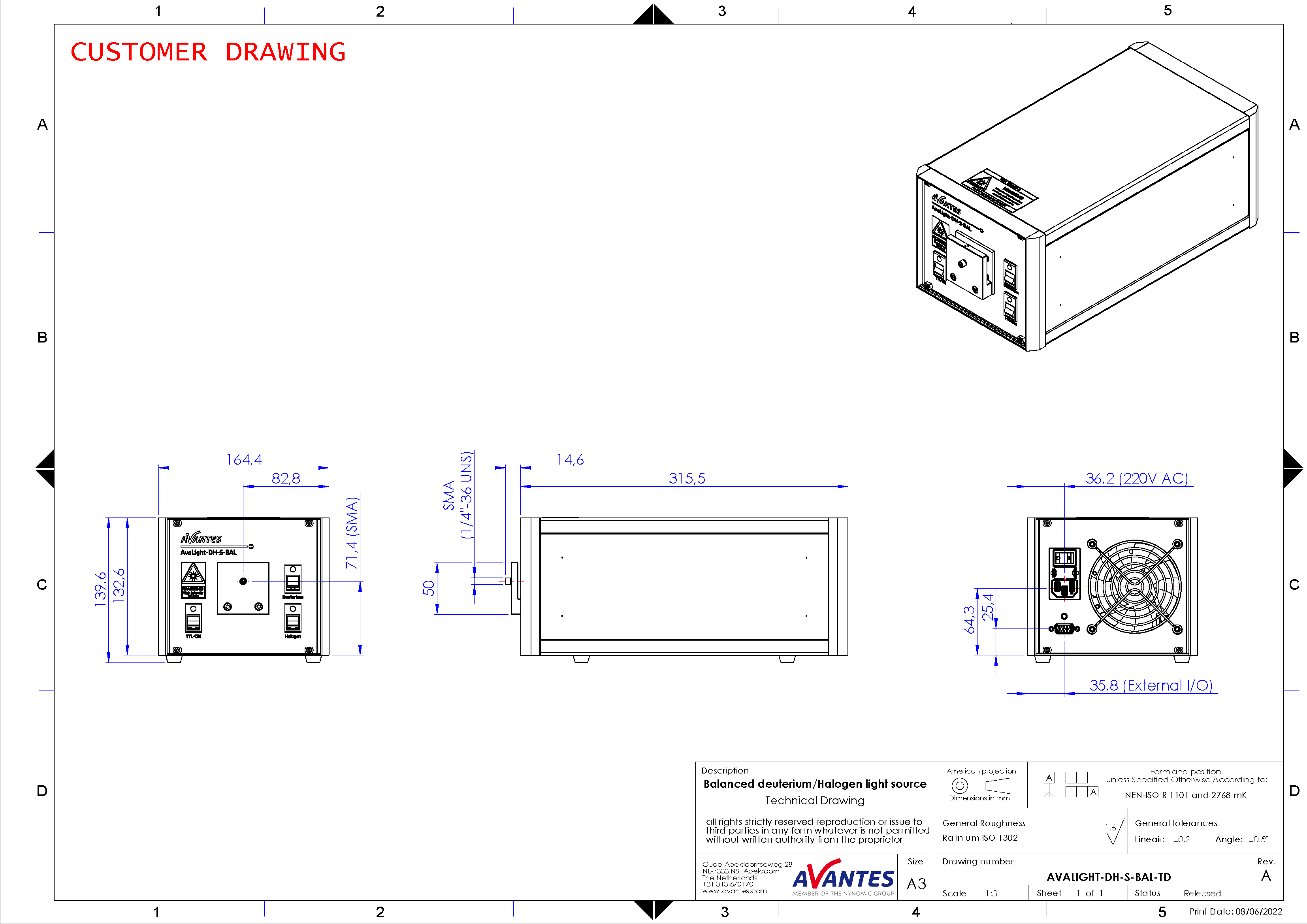 | AvaLight-D-S-BAL | 均衡型氘燈, 215-500 nm, 包括 TTL快門, 需使用抗紫外光纖-SR |