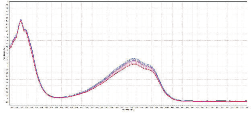 PART01 實(shí)驗(yàn)系統(tǒng)與方法 實(shí)驗(yàn)系統(tǒng) 實(shí)驗(yàn)系統(tǒng)設(shè)置如圖2所示,使用的光譜儀為AvaSpec-ULS2048x64-EVO。這款光譜儀配置2048x64像素背照式CCD探測(cè)器,適用于在紫外到近紅外范圍內(nèi)的應(yīng)用。本實(shí)驗(yàn)所使用的這款光譜儀在200-450nm波長(zhǎng)范圍內(nèi)進(jìn)行了優(yōu)化,并使用了50μm的狹縫。 圖2:管道連接:流動(dòng)樣品池與蠕動(dòng)泵;蠕動(dòng)泵與溶液樣品;流動(dòng)樣品池出口與溶液。光譜儀和光源通過(guò)光纖連接流動(dòng)樣品池 使用的光源是AvaLight-XE-HP,一種大功率(6w)脈沖氙燈光源。這款光源尺寸小巧適宜集成。 其他附件包括:一個(gè)10mm光程長(zhǎng)度的微型流動(dòng)樣品池(Flowcell-Z-10-PEEK),其配置的小直徑軟管連接流動(dòng)池和蠕動(dòng)泵。兩個(gè)200μm芯徑光纖(FC-UVIR200-1-MS)。 實(shí)驗(yàn)方法 實(shí)驗(yàn)中,將10mg的L-酪氨酸稀釋于25mL的純水溶液中,10mg的L-色氨酸稀釋于125mL的純水溶液中。通過(guò)流動(dòng)樣品池和蠕動(dòng)泵對(duì)溶液進(jìn)行連續(xù)測(cè)量,測(cè)量期間,溶液稀釋操作每隔1分鐘進(jìn)行一次。L-酪氨酸溶液每一次加入純水0.5mL,共稀釋7次;L-色氨酸溶液每一次加入純水5mL,共稀釋14次。我們對(duì)L-色氨酸溶液稀釋的次數(shù)與數(shù)量更多,以觀測(cè)隨著溶液的進(jìn)一步稀釋,其吸光度的變化。 對(duì)于數(shù)據(jù)分析,我們使用了AvaSoft中的Absorbance吸光度模式和Timeseries模塊。TimeSeries模塊用于記錄在整個(gè)測(cè)量過(guò)程中吸光度峰值隨時(shí)間的變化。測(cè)量L-酪氨酸溶液,我們使用了150ms的積分時(shí)間,L-色氨酸溶液則使用120ms的積分時(shí)間,平均次數(shù)均設(shè)置為10。