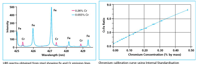 LIBS技術可以直接對材料進行分析,而不需要對材料做任何預處理。 但如果樣品表面涂覆有其他物質(比如氧化的或者涂層的鋼材)時,則要用激光先把樣品表面的涂層清理干凈,把下面的被測材料暴露出來,才能對樣品做分析。激光清除過程的效率取決于所要清除的材料種類以及所激光能量。通常對于幾百微米厚的氧化物、油污或者涂層,使用一個小巧的低功率激光器就可以很快清除干凈。此外,激光等離子體產(chǎn)生的超聲震波對去除半流體或者粘滯性污物有非常好的效果。例如,利用 LIBS技術可以分析表面裹有幾厘米厚的氫氧化鎂礦泥的金屬。