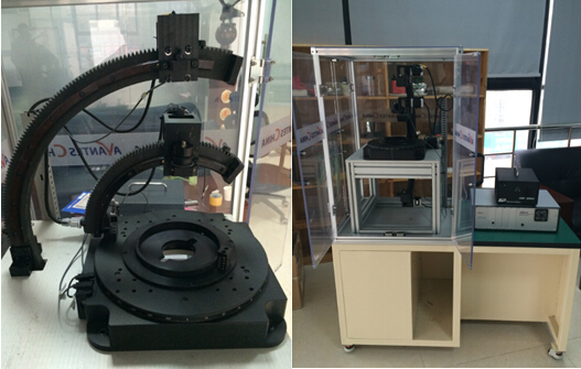 雙向反射分布函數(shù)(Bidirectional Reflectance Distribution Function)表示了不同入射角條件下物體表面在任意觀測角的反射特性,對于研究物質(zhì)、材料的基礎物理特性和應用前景有著重要的意義。但是這一分布函數(shù)的測量存在著角度定位精度要求高,測量點多,測試數(shù)據(jù)量大的難點,單純由手動操作難以完成。荷蘭Avantes公司研發(fā)了雙向反射分布函數(shù)測量系統(tǒng),集成大功率鹵鎢燈照明系統(tǒng)、雙通道光纖光譜儀探測系統(tǒng)、測量機械系統(tǒng)和控制系統(tǒng)。