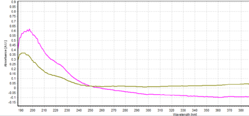 正如預測的那樣,10mm光程的可變光程浸入式探頭可以更好地識別草甘膦的吸光度峰。5mm光程探頭也可以探測到草甘膦的信號,但光譜形狀不像10mm光程探頭的那樣均勻。這四種高度稀釋的樣品都證明了在較長的光程長度下實驗效果更好。如果我們的猜想正確,那么如果在另一個實驗中大幅增加樣品濃度,那么5mm光程探頭就能提供更好的實驗效果。 這個實驗證明,可變光程浸入式探頭可以適用于低濃度樣品的吸光度測量,并且可以覆蓋大范圍的濃度范圍。這個實驗很好地證明了當被測樣品的濃度不同時,使用可變光程浸入式探頭所提供的不同光程都可以得到較好的測試結果。